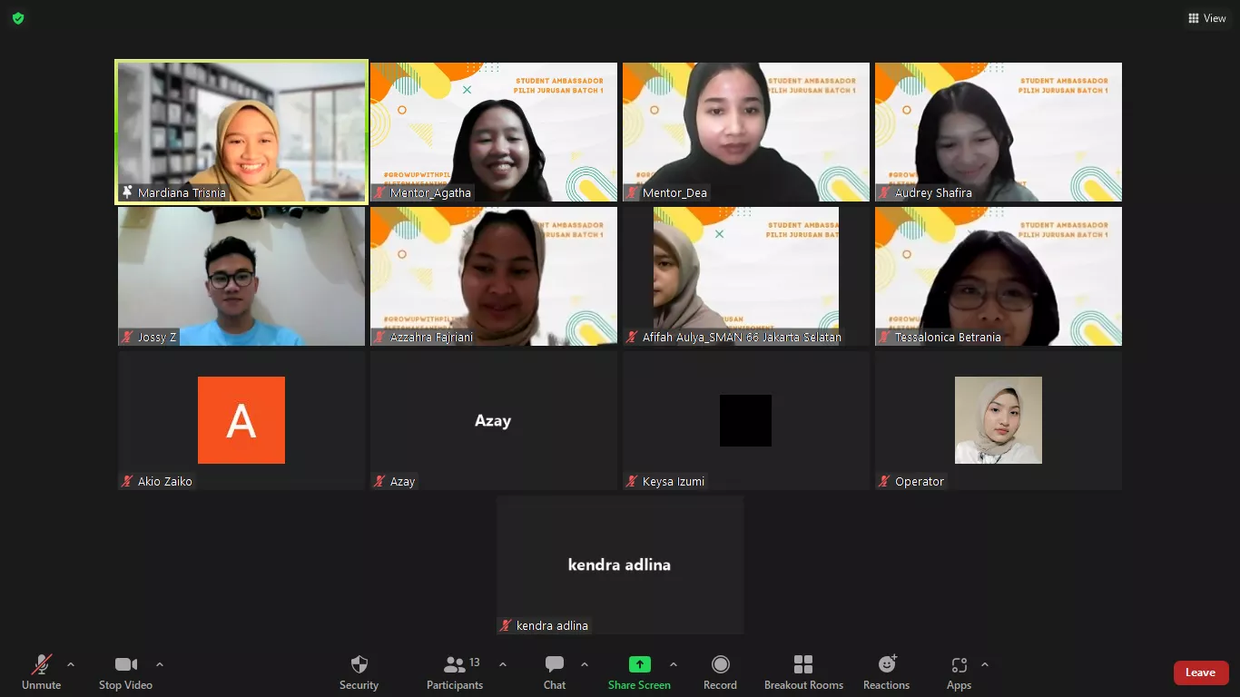 Jakarta, 6 Mei 2023 - 11 siswa/siswi terpilih Student Ambassador Pilih Jurusan Batch 1 resmi mengawali kegiatannya pada rangkaian pertama self development class atau yang dikenal dengan istilah Piljurian Academy.